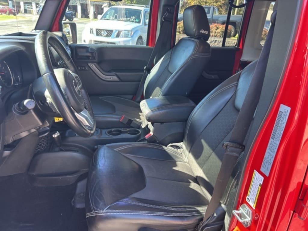 This 2018 Jeep Wrangler JK in Firecracker Red Clearcoat features: Recent Arrival! 3.6L V6 24V VVT 4WD 115V Auxiliary Power Outlet, Auto-Dimming Mirror w/Reading Lamp, BF Goodrich Brand Tires, Black Jeep Grille Badge, Black/Chrome Screws Fuel Filler Door, Body Color Fender Flares, Connectivity Group, Dana 44/226MM Rear Axle, Deep Tint Sunscreen Windows, Freedom Edition Package, Freedom Package Decals, Front 1-Touch Down Power Windows, Heavy Duty Suspension w/Gas Shocks, Iron Gray Interior Accents, Jeep Trail Rated Kit, Leather Seat w/Cloth (Sedoso Fabric), Mid Gloss Granite Crystal Grille, MOPAR Black Tail Lamp Guards, MOPAR Grab Handles, MOPAR HD Rear Bumper, MOPAR Slush Mats, MOPAR Winch-Capable HD Front Bumper, Oscar Mike Badge, Pantone Trail Rated Badge, Power Convenience Group, Power Heated Mirrors, Power Locks, Premium Black Sunrider Soft Top, Quick Order Package 24F Freedom Edition, Remote Keyless Entry, Security Alarm, Silver Interior Accents, Sunrider Soft Top, Tire Pressure Monitoring Display, Uconnect Voice Command w/Bluetooth, Vehicle Information Center, Wheels: 17" x 7.5" Low Gloss Granite Crystal.