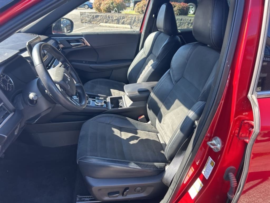This 2022 Mitsubishi Outlander Black Edition in Red features: Recent Arrival! 2.5L 4-Cylinder DOHC 4WD ABS brakes, Active Cruise Control, Alloy wheels, Electronic Stability Control, Front dual zone A/C, Heated door mirrors, Heated Front Bucket Seats, Heated front seats, Illuminated entry, Low tire pressure warning, Power Liftgate, Power moonroof, Remote keyless entry, Traction control.